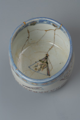HOME> 古陶器>釉裏紅 青花扇文茶碗 明時代[no0030]